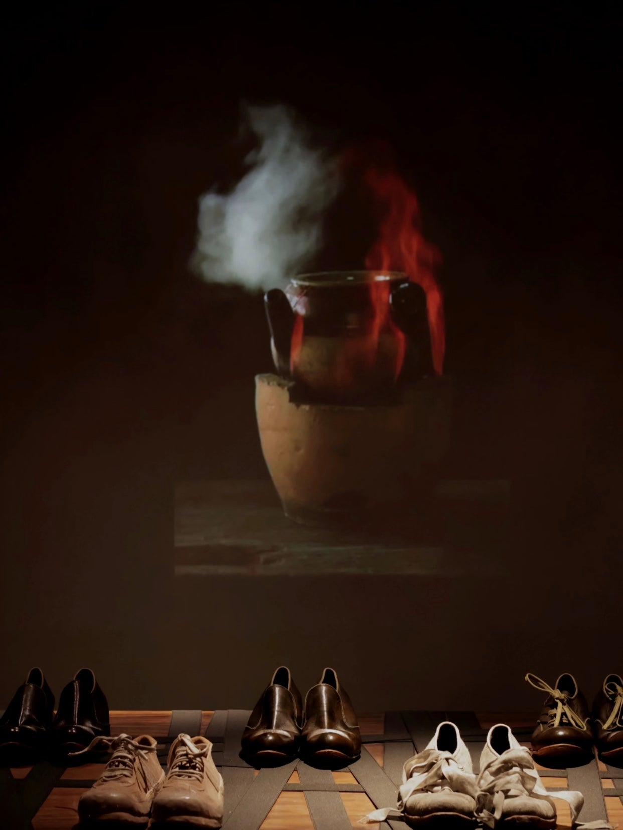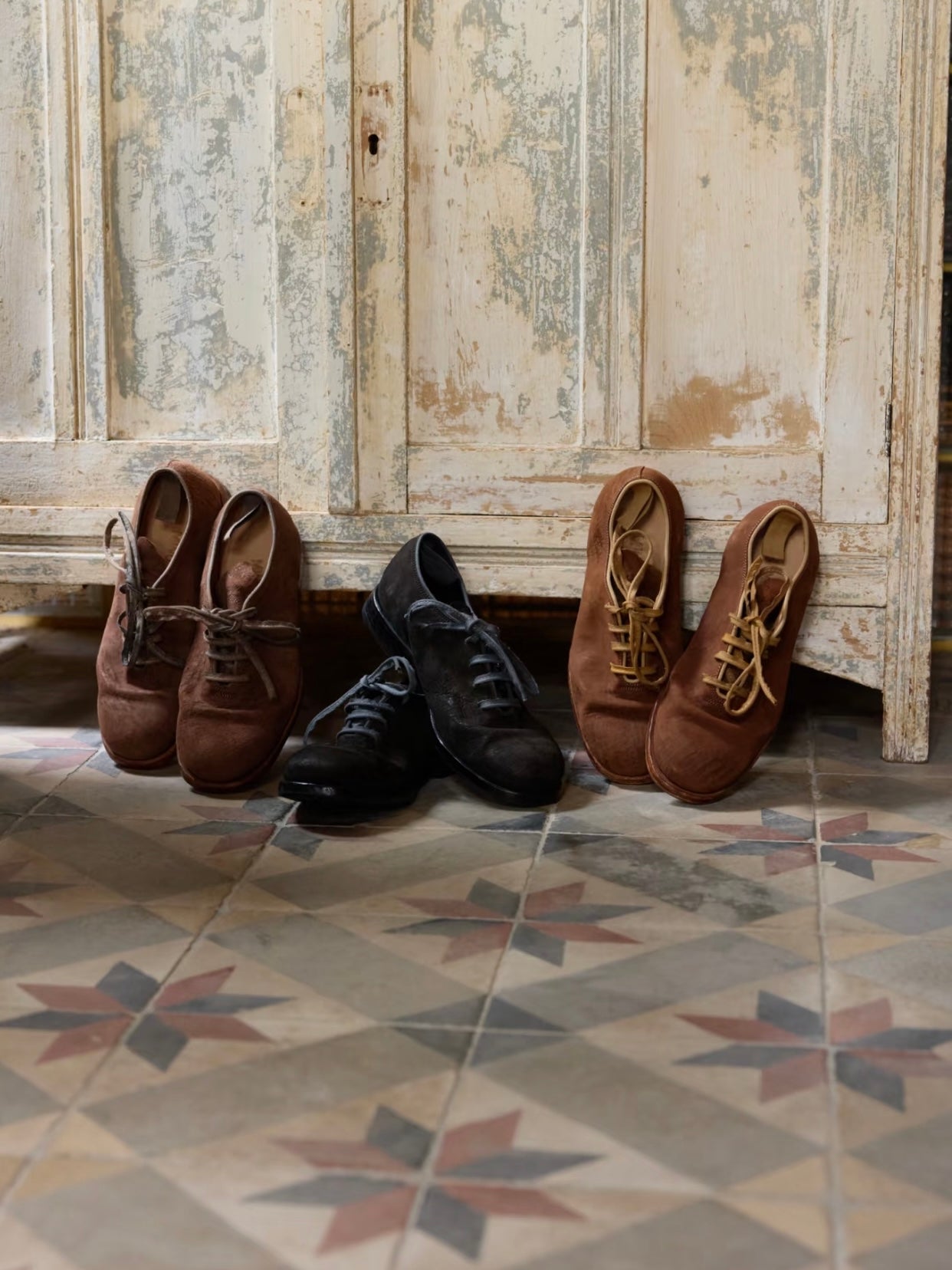 Handmade Leather Shoes with Handwoven Cotton & Plant-Dyed Finish and Textured Creases