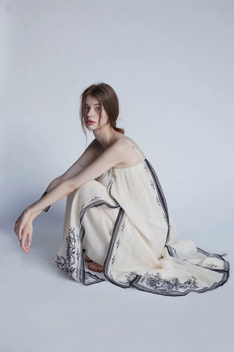 Tencel Camisole Dress with 3D Flowers, Seaside Vacation Style
